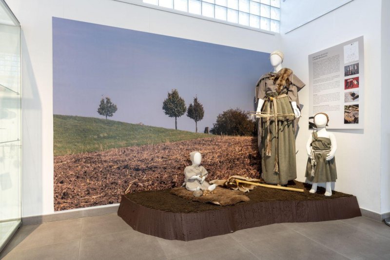 Na výstavě se seznámíte také s jednotlivými etapami pravěkého osídlení. Nechybí ani možnost vyzkoušet si oděv člověka doby bronzové.