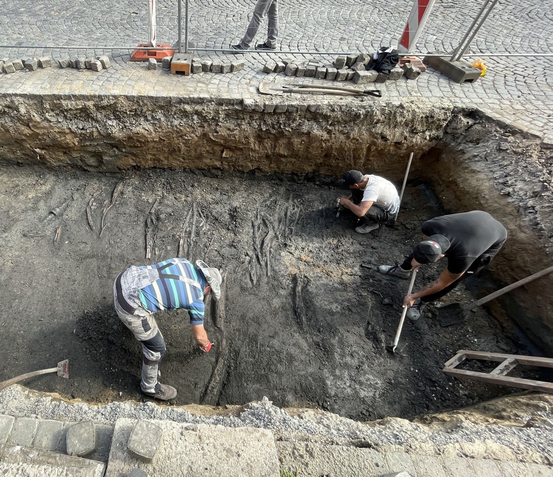 V případě Otakarovy ulice poskytla lokalita mimořádně cenné nálezové situace vztahující se ke středověké i raně středověké etapě osídlení. Velmi dobře se dochovalo šest úrovní haťových úprav cesty. Byly tvořeny převážně dubovým dřevem, popřípadě jilmovými větvemi. Vrstvy hatí byly ukládány v intervalu po 10–20 cm a prostupovaly celou stratigrafickou jednotku 107, která vznikala průběžně od kolonizačního horizontu po vrcholný středověk. Vrstva se jevila jako jednolitá černá humózní, na jejíž bázi (odpovídající kolonizačnímu horizontu) výrazně vzrostl podíl organických nálezů (opracované dřevěné prvky, pecky, kůže, travní zbytky).